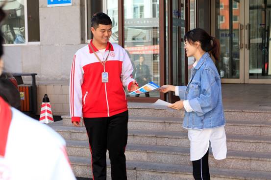 校团委志愿者主动向同学们派发宣传单